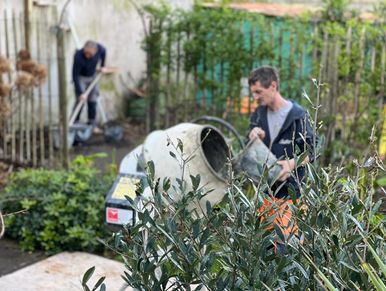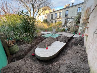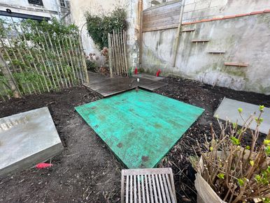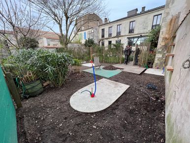 Question notre maison étant un rue principale du centre-ville, gruter le bain par dessus la maison n'était pas un option. Notre voisin étant un Lycée on a demandé d'avoir accès à leur cour.