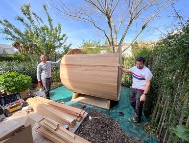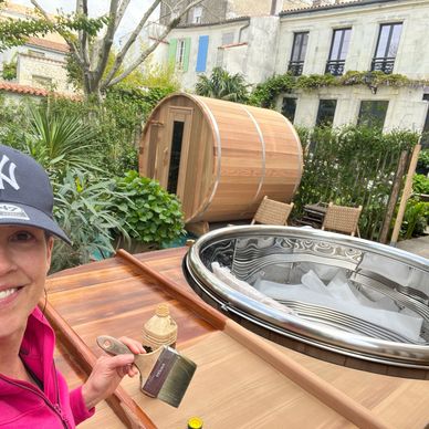 Les Finlandais sont les pros alors un sauna 'tonneau'. Plus simple à choisir, celle-ci ne m'a pas pris trop de recherche, car facile à trouver et pour nous. Il fallait pouvoir s'allonger (mon époux fait 1,83 alors les bancs, il fallait faire 2 m).
